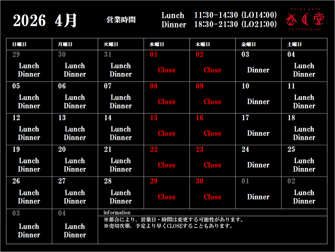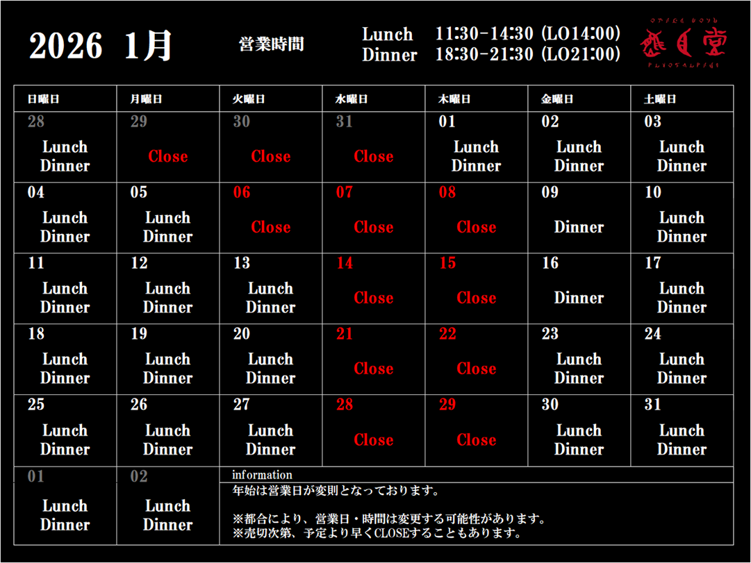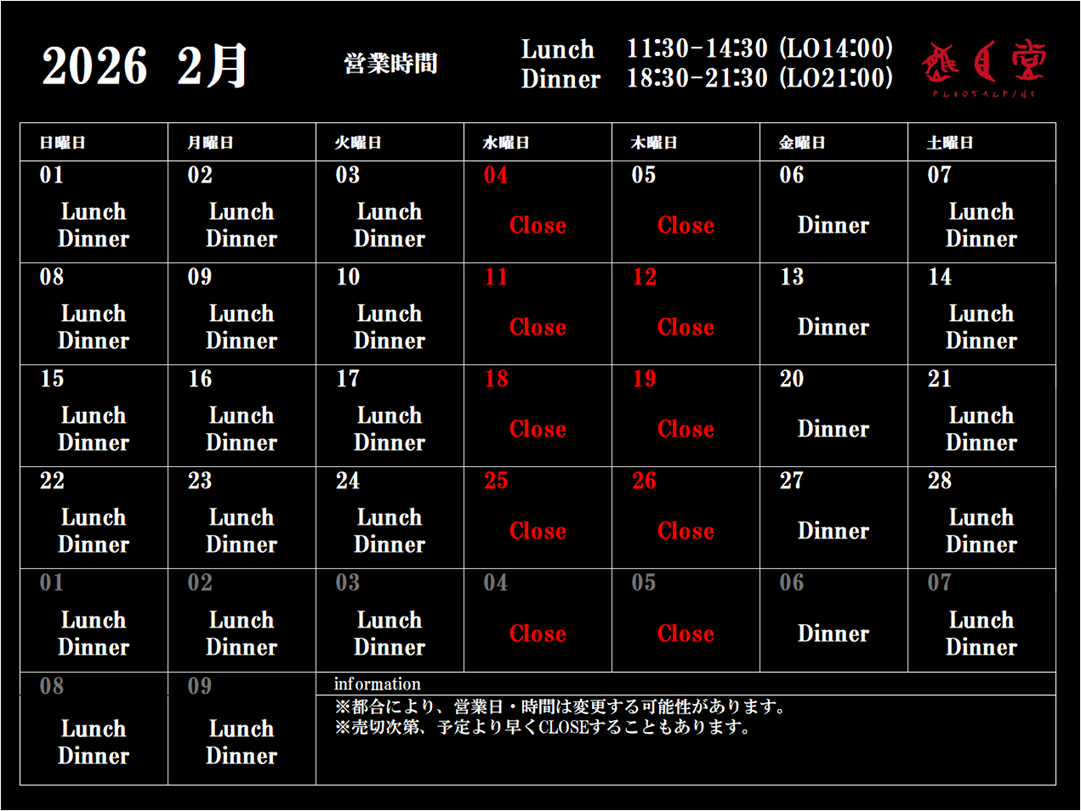 月 Lunch/Dinner